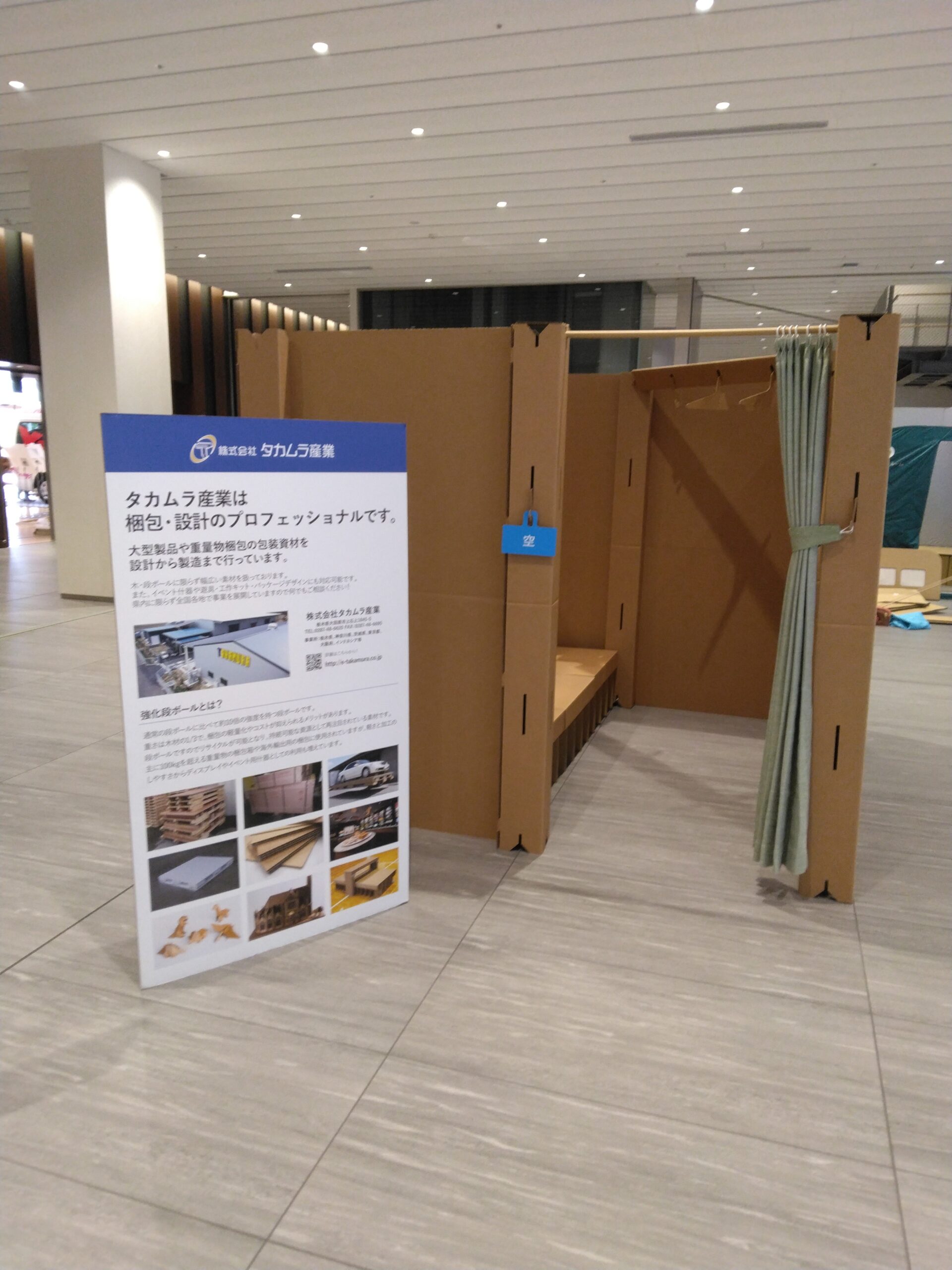 「とちぎ防災フェア」に避難所体験として、システムパーテーションとダンボールベッドを展示しました。